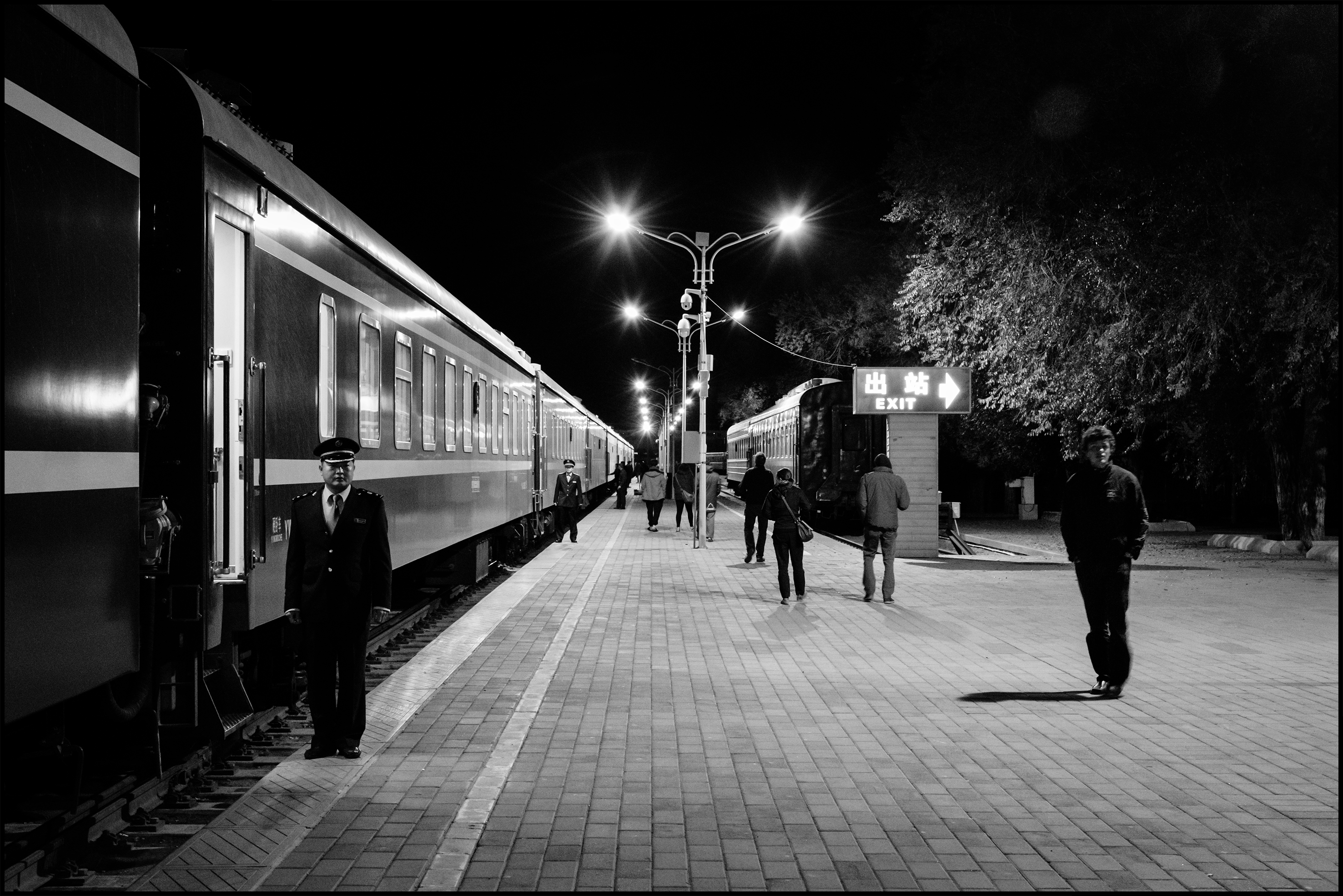 Rond 18h00 bereiken we de grens van Mongolië en de komende 6 uur zal de trein welgeteld 21 km afleggen.   Die 6 uur gaan op aan formaliteiten aan de twee grenzen maar vooral aan het wisselen van het onderstel van de trein.   In China rijden we terug op dezelfde spoorbreedte als Europa.   Volgens mij heeft dat in Brest (Wit-Rusland) ongeveer 1,5 uur geduurd, de Chinezen doen er meer dan 4 uur over en de hele operatie gaat gepaard met eindeloos toeteren van de lokomotieven en veel schudden en schokken, van slapen komt er dus voor 24h00 niet veel in huis.  Als we éénmaal terug vertrokken zijn, besluit mijn Noorse buur een feestje te gaan bouwen in de coupé naast die van mij.   Als het nu nog een sympathieke kerel was geweest, dan was ik gewoon mee gaan fuiven , maar het is ongeveer de grootste eikel die ik op de hele reis ben tegengekomen.  Alleen al het geluid wat hij produceert, echt zo’n kerel die denkt dat hij perfect Engels spreekt als hij maar hard genoeg zijn best doet om te klinken als een redneck uit Texas.   Mijn lontje wordt blijkbaar korter …